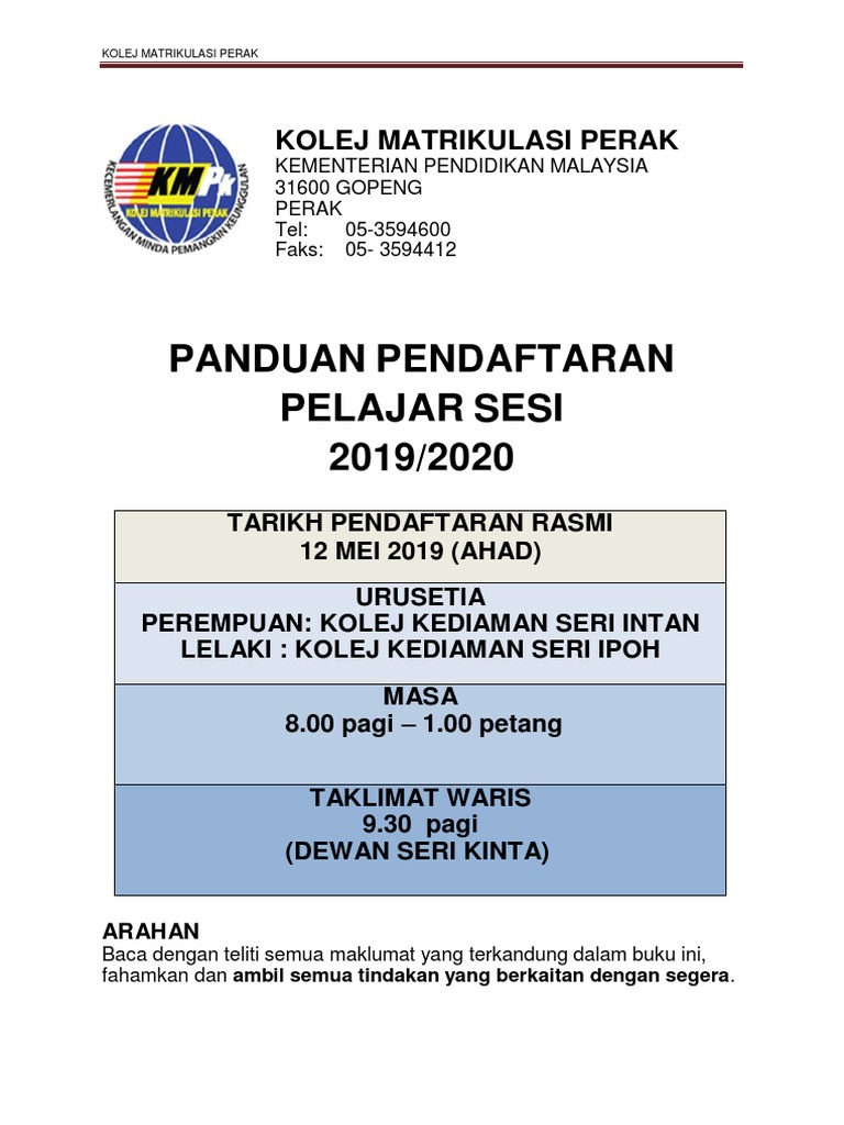 Kolej matrikulasi perak asrama. E-mel Laman Web. Log in to leave a tip here. 19 Mac 2021 Masa.