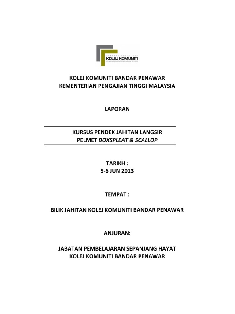 Kursus jahitan langsir kolej komuniti. SIJIL PELANCONGAN DAN PENGEMBARAAN Selain itu Kolej. JASIN - Prihatin terhadap risiko dihadapi barisan hadapan khususnya pasukan perubatan seorang pekerja kedai barangan logam memanfaatkan ilmu kursus jangka pendek jahitan yang pernah diikuti di Kolej Komuniti Selandar KKSL dengan mengambil bahagian dalam projek jahitan pakaian perlindungan diri PPE. Perak 175 Kolej Komuniti Temerloh.